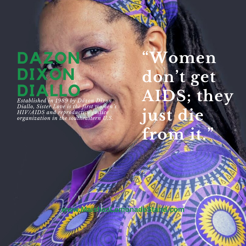Sister Love is an organization that started the fight against AIDS for Black Women/ We were overlooked and understudied segments in the fight against AIDs and yet we were dying. Someone had to stand up and Dazon Dixon Diallo did. Today. it is has expanded its services to advocate for all women that are marginalized or uncounted when it comes to public health issues