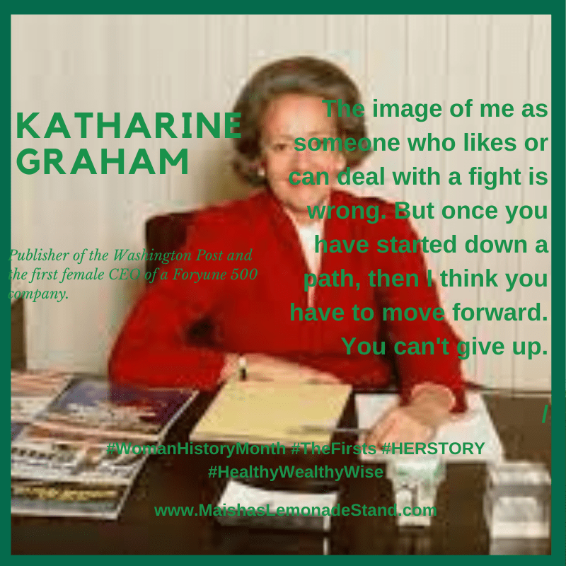 I did not know she was one of the first female publishers of an American newspaper and the FIRST-EVER female chief executive officer of a Fortune 500 company. Her road to this position went through a father who hired her husband for the position. Her husband was a depressive and alcoholic who killed himself. That was when she stepped up to lead the paper and built it up both financially and prestigiously.