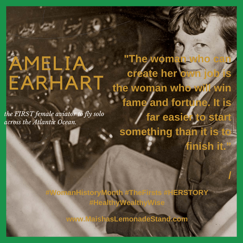 Today, the youngest little girl gets on a plane with no fear. During Amelia Earhart’s time, even men thought you were nuts to fly. Blanche Scott was the FIRST women pilot, in 1910, when the plane that she was allowed to taxi mysteriously became airborne. In 1911, Harriet Quimby became the FIRST licensed woman pilot. Amelia was the FIRST female aviator to fly solo across the Atlantic Ocean.